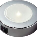 Pinta-asennettava pyöreä valaisin katkaisimella, kromattu kehys, 94G4V LED 8-30 V.