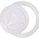 Valkoinen tarkastusluukku muovia. Ulkomitta 140 mm, sisämitta 100 mm, asennusaukko 110 mm.