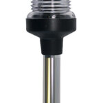 Ympärisektorin 360° valomasto, putki alumiinia, kiinnitys vaakapintoihin, valo kytkeytyy päälle, kun valomasto painetaan jalkaansa. Polttimon kanta BA15d, poltin sisältyy hintaan. Korkeus 100 cm.