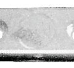 Valkoista muovia, pituus 47 mm, leveys 19 mm.