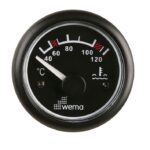 Lämpötilamittarit, 450-23 Ω. Asennus-Ø 52 mm, asennussyvyys 62 mm, kokonais-Ø 62 mm. Vakiona punainen ja keltainen valaistus. 24 V asennusvalmius etuvastuksella. Käyttöjännite 12/24 V. Musta pohja / musta kehys.