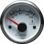 Lämpötilamittarit, 450-23 Ω. Asennus-Ø 52 mm, asennussyvyys 62 mm, kokonais-Ø 62 mm. Vakiona punainen ja keltainen valaistus. 24 V asennusvalmius etuvastuksella. Käyttöjännite 12/24 V. Valkoinen pohja, kehys ruostumatonta terästä.