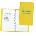 Ihanteellinen kaikille, jotka tarvitsevat muistiinpanovälineitä vesillä. Vihko on täysin vedenkestävä, ja sitä voi käyttää jopa veden alla. Wetnotes-vihkoon voidaan kirjoittaa tavallisella pehmeäteräisellä lyijykynällä. Kierreselän ansiosta vihko aukeaa täysin auki. Lehdet on helppo irrottaa vihosta. Kestävät huomiokeltaiset vinyylikannet.