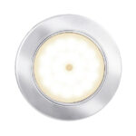Vega Touch valaisin ei tarvitse erillistä katkaisinta, vaan se sytytetään ja sammutetaan koskettamalla kevyesti lasin keskiosaa. Valaisintehoa voidaan himmentää pitämällä sormea lasin keskiosalla kunnes oikea himmennysaste saavutetaan. Kun veneessä on virta päällä, palaa Vega Touchin keskellä punainen LED ilmoittaen valaisimen sijainnin. Kokonais-Ø 75 mm ja asennus-Ø 60 mm. Asennussyvyys 15 mm. Käyttöjännite 12 V. Vesitiivis IP66.